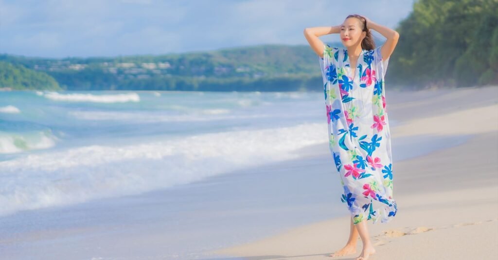 Kaftans are ideal for lounging by the beach or heading to a beach party. Flowing kaftans with bold prints offer coverage and elegance. Style them with flat sandals and oversized sunglasses for a chic vibe perfect for a beach party outfit.